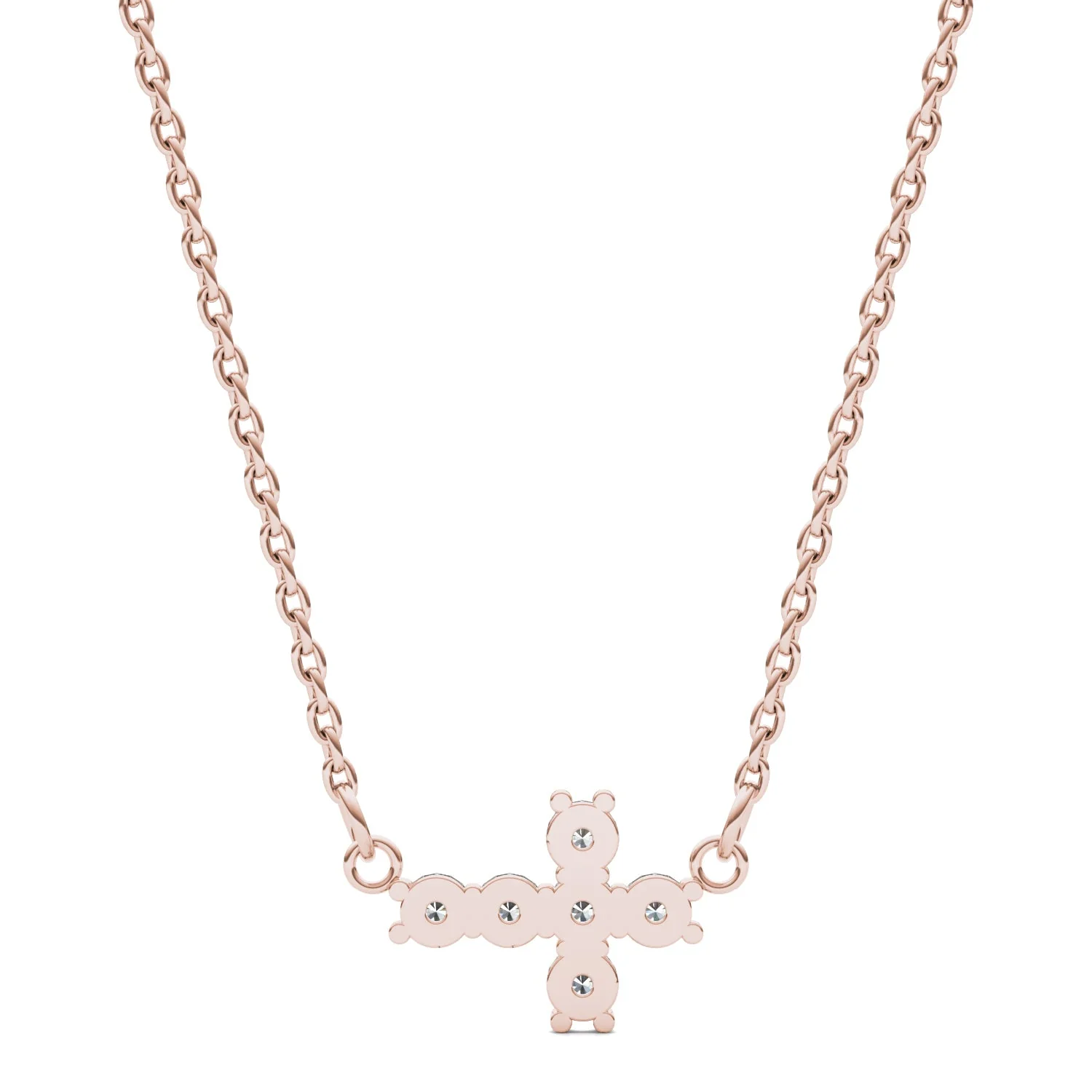 0.18 CTW DEW Round Moissanite Fixed Cross Necklace in 14K Rose Gold