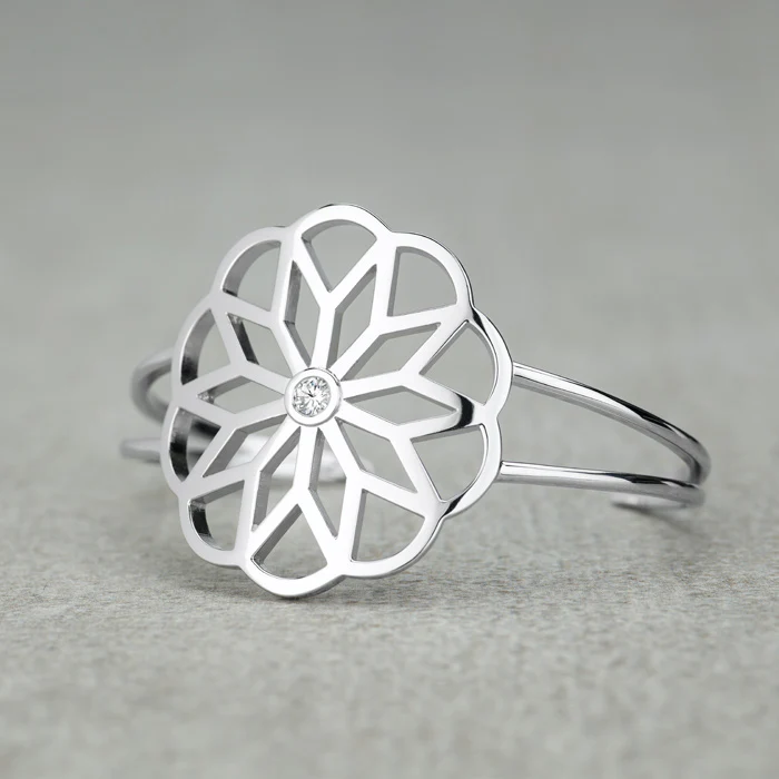 0.23 CTW DEW Moissanite Bezel Floral Cuff Bracelet in Sterling Silver